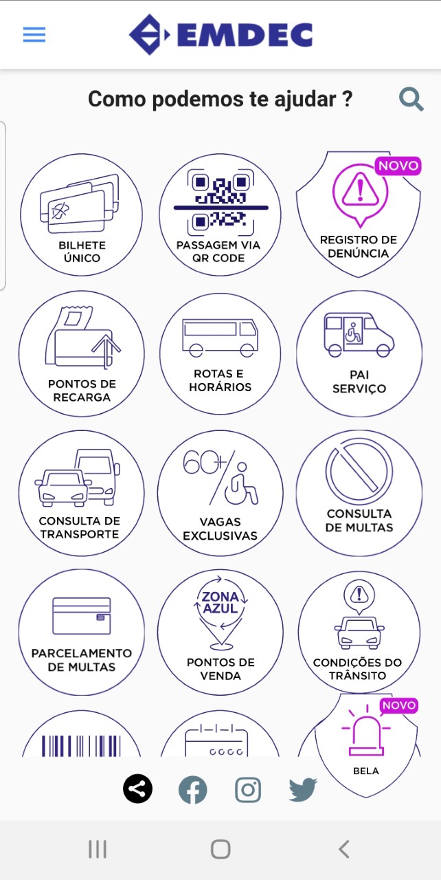Se o aplicativo da Emdec não atualizar automaticamente para a versão 1.0.54, com os botões Bela e Registro de Denúncia, desinstale e reinstale no seu celular.