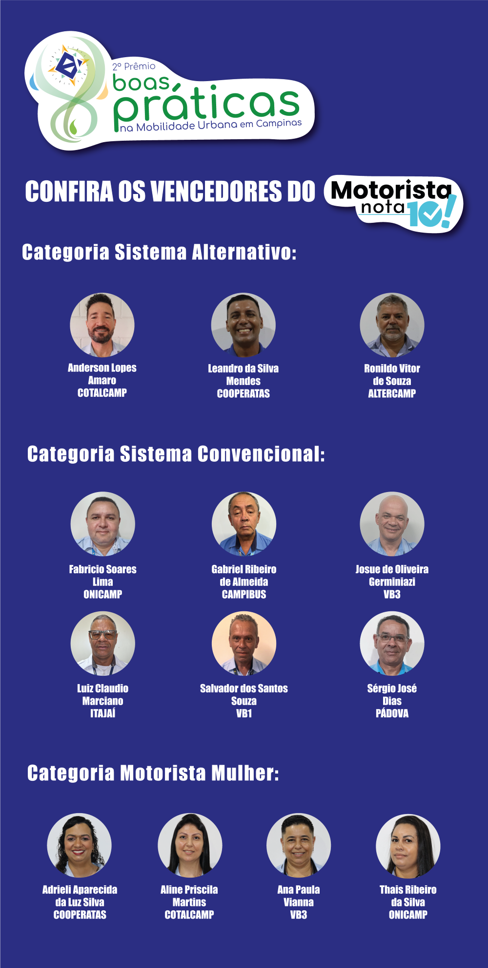Também serão valorizados e reconhecidos os motoristas de ônibus, com uma votação popular de profissionais selecionados a partir da identificação com a profissão, comprometimento com a qualidade do serviço, ética, cidadania, segurança viária e capacidade de comunicação.