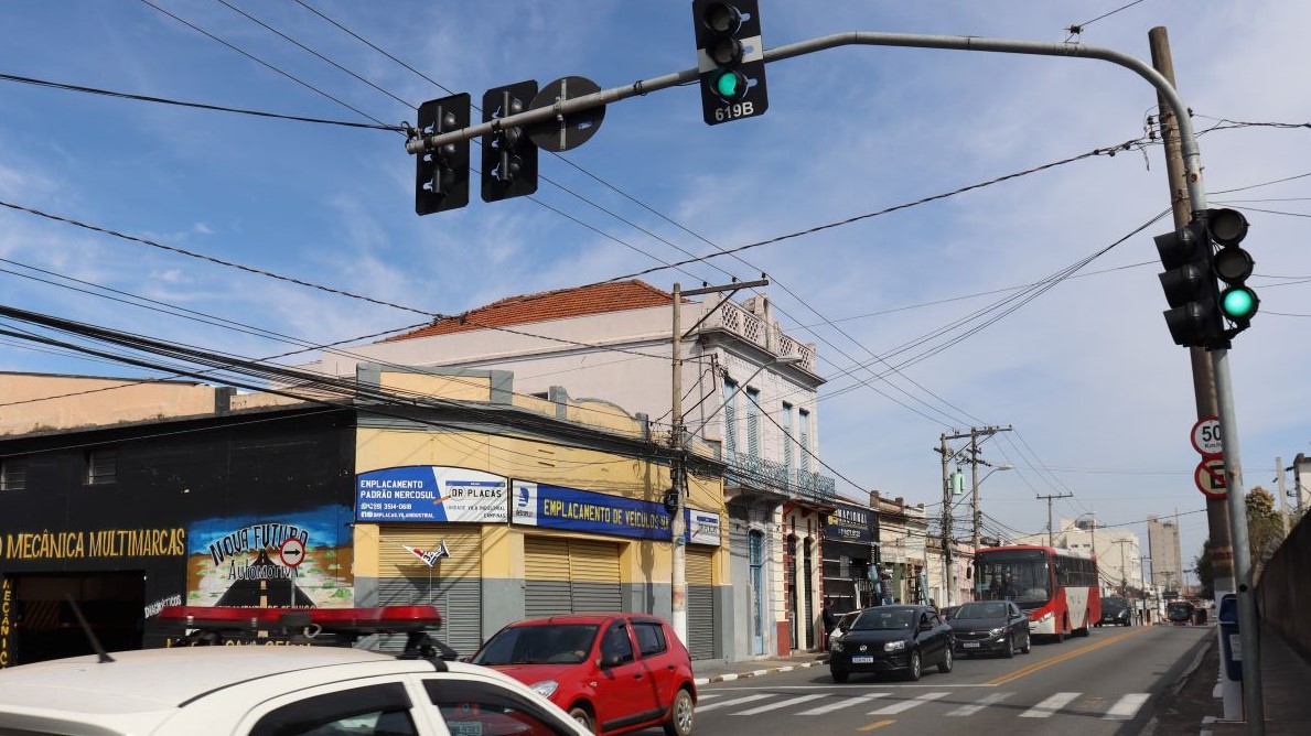 À esquerda, semáforos a laser da Rua Dr. Salles Oliveira x Rua Barão de Monte Mor, na Vila Industrial.